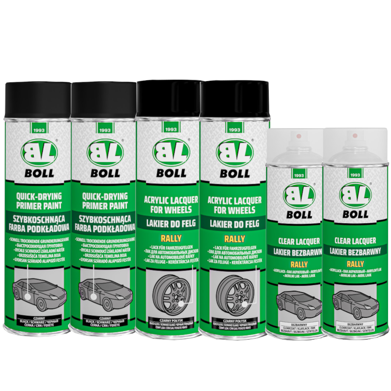 DUŻY ZESTAW DO ODNOWIENIA REGENERACJI NAPRAWY MALOWANIA FELG CZARNY POŁYSK BOLL