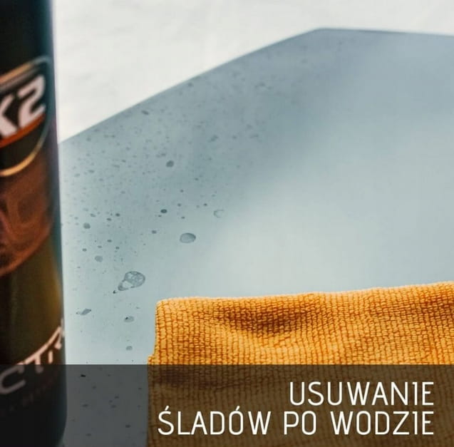 Quick detailer K2 na lakierach zabezpieczonych woskiem, wzmacnia powłokę ochronną i przedłuża jej trwałość. Lakierom niezabezpieczonym nadaje połysk i ochronę do kolejnego mycia.