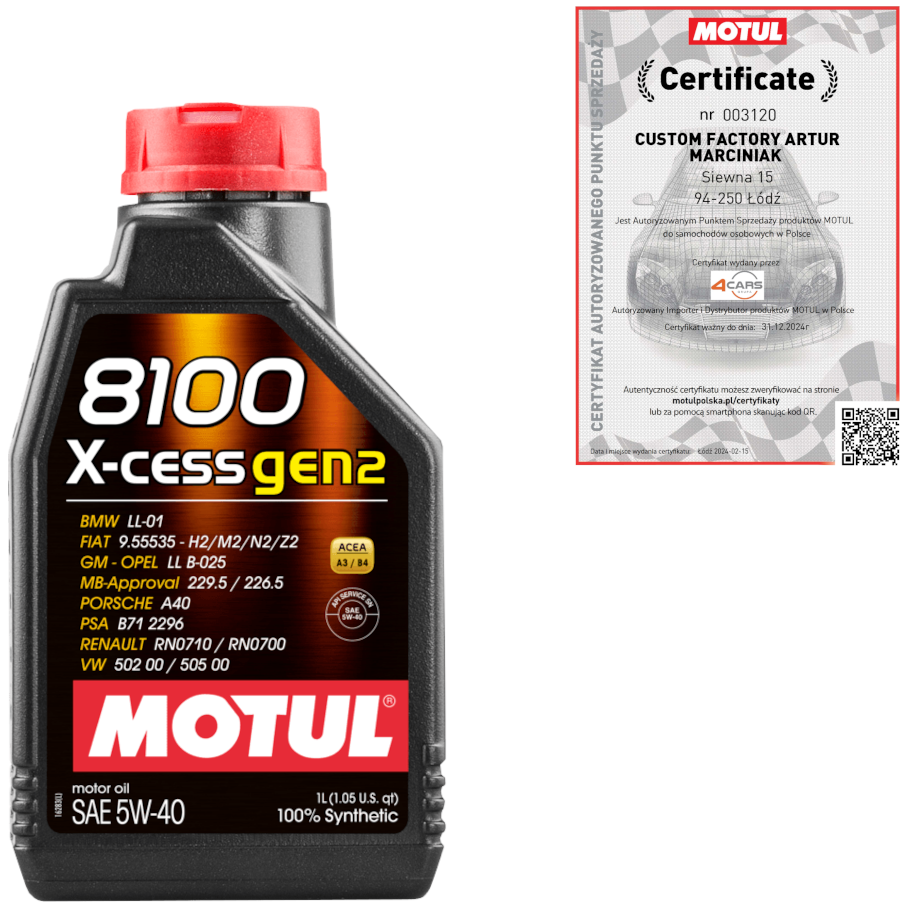 MOTUL 8100 X-CESS GEN2 5W40 1L BMW LL-01 VW 502 00/ 505 00