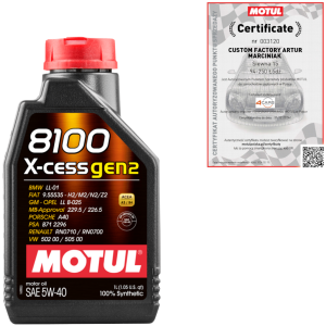 MOTUL 8100 X-cess gen2 5W-40 spełnia wszystkie wymagania normy BMW Long Life-01 Grupy BMW dla BMW, Pojazdy MINI i ROLLS-ROYCE bez wyjątków tj. dla modeli przed 2019 i po 2019. Dla modeli do 2019r. Można również zastosować MOTUL 8100 X-cess 5W-40.