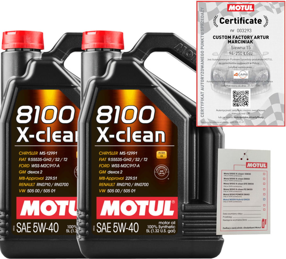 MOTUL 8100 X-CLEAN 5W40 10L (5L+5L) + 2x ZAWIESZKA