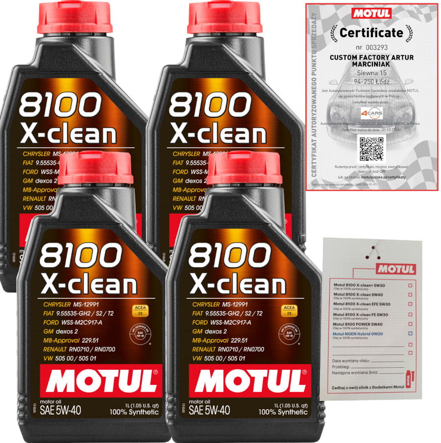 MOTUL 8100 X-CLEAN 5W40 4L (4x1L) + ZAWIESZKA