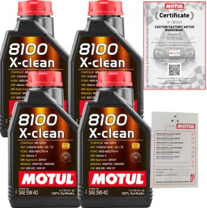 MOTUL 8100 X-clean 5W40 spełnia wymagania normy BMW LL-04 Grupy BMW dla BMW, MINI i ROLLS-ROYCE do roku modelowego 2019, tj. tylko do końca 2018 roku. Dla modeli od 2019 r. wymagających atestowany olej BMW LL-04, produkty takie jak MOTUL 8100 X-clean+ 5W30, MOTUL 8100 X-clean EFE 5W-30, Należy zastosować 8100 X-clean Gen2 5W40 lub SPECIFIC LL-04 5W40