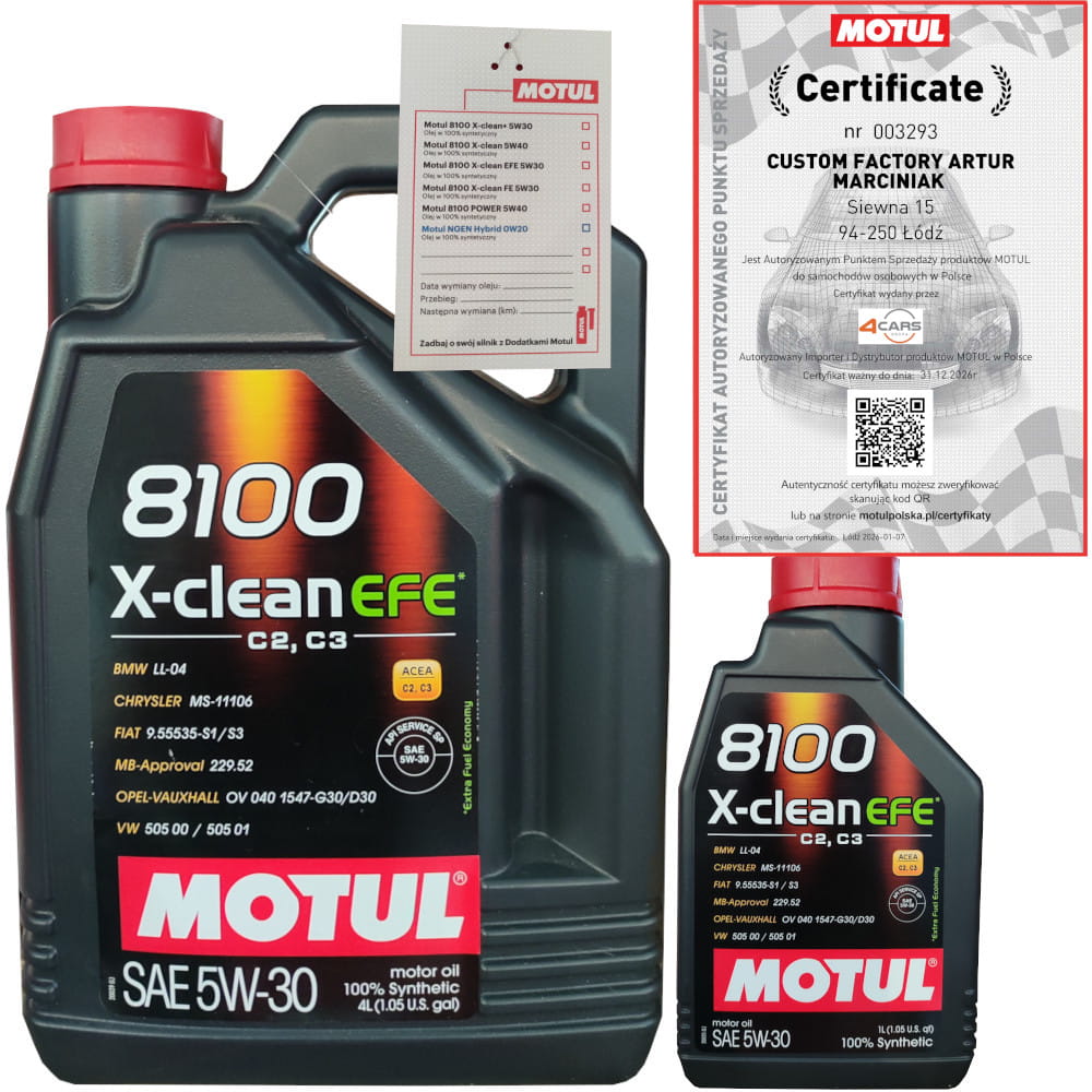 MOTUL 8100 X-CLEAN EFE 5W30 C2/C3 5L BMW LL-04 VW 505 00/ 505 01 + ZAWIESZKA