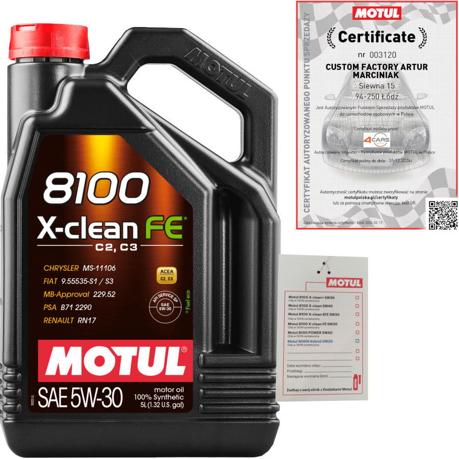 MOTUL 8100 X-CLEAN FE 5W30 C2/C3 5L RENAULT RN17 PSA B71 2290 + ZAWIESZKA