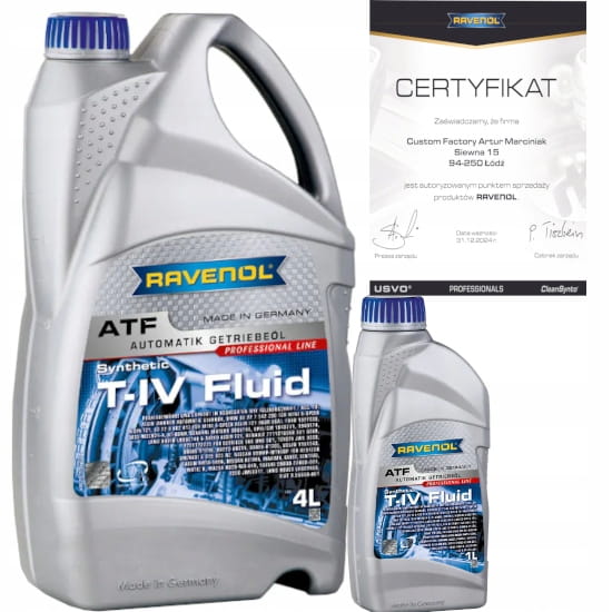 RAVENOL ATF T-IV Fluid to syntetyczny olej przekładniowy ATF (Automatic Transmission Fluid) najnowszej generacji opracowany na bazie olejów hydrokrakowanych ze specjalnymi dodatkami uszlachetniającymi i inhibitorami. W trakcie eksploatacji gwarantuje znakomite funkcjonowanie przekładni automatycznej oraz maksymalną ochronę przed zużyciem.